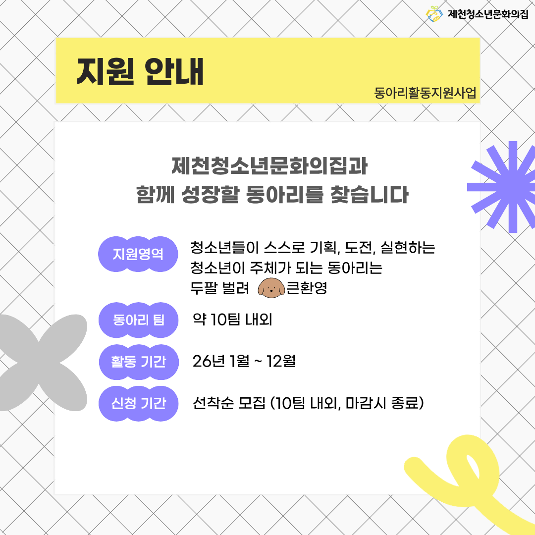 모집 대상 : 제천시 관내 청소년