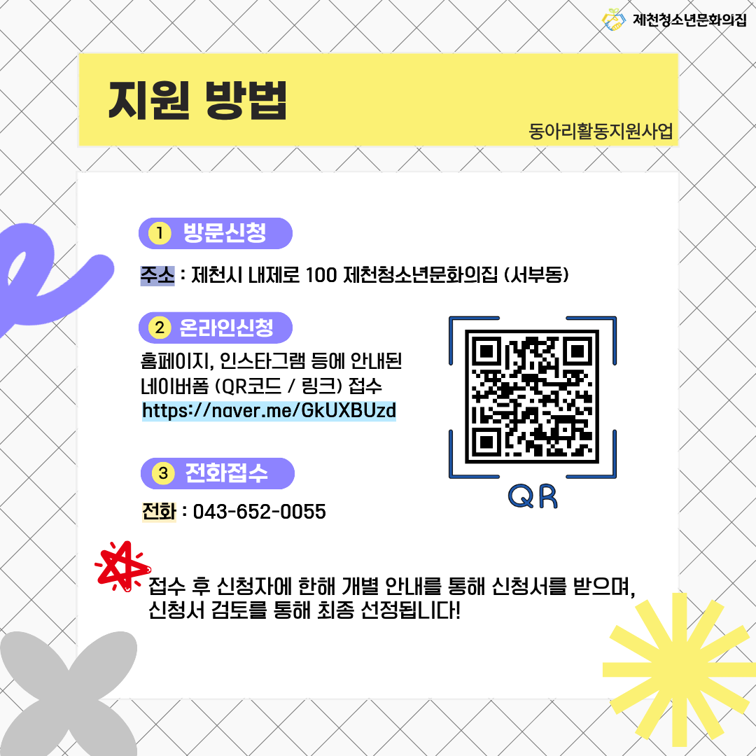 접수 신청 : 043-652-0055
