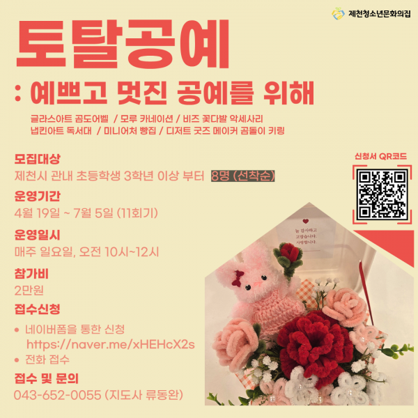 청소년문화프로그램 [토탈공예] 수강생 모집 안내