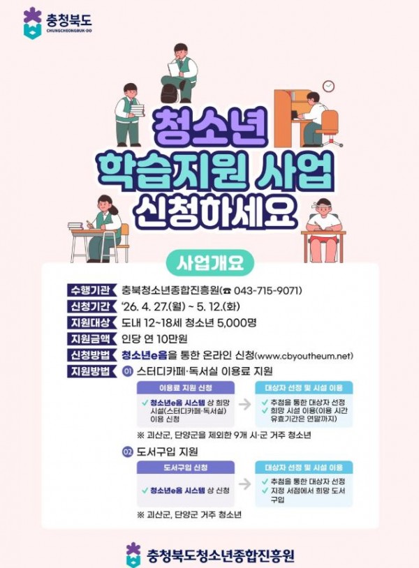 [충북청소년종합진흥원] 2026 청소년 학습지원 사업 안내