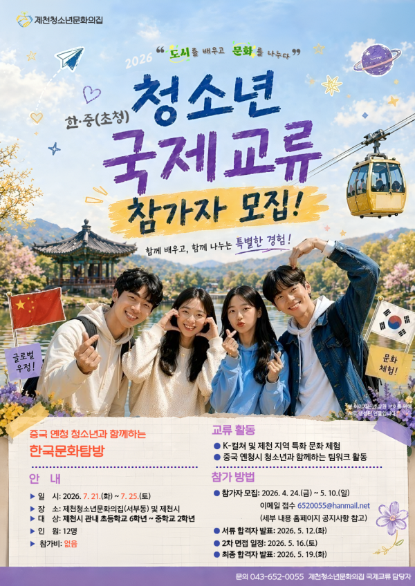 2026 제천 청소년 국제교류(초청) 사업, 청소년교류단 모집